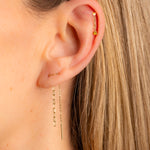 1. Commencez par insérer une boucle d’oreille classique (à tige longue et droite) dans votre piercing.