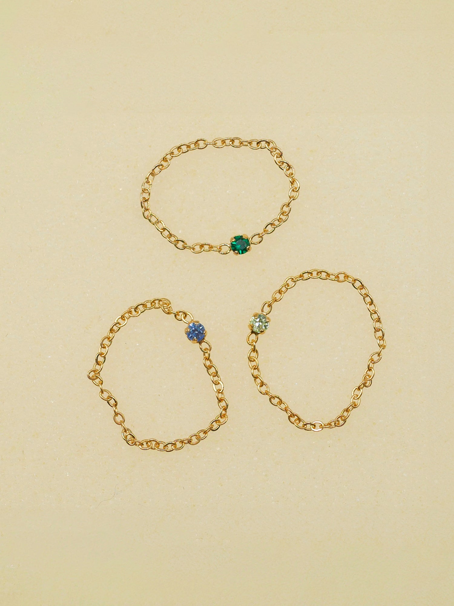 Les bijoux April Please sont en laiton plaqué or 18 carats, 3 microns ou palladium. Les pierres qui ornent certains modèles sont des cristaux de verre.