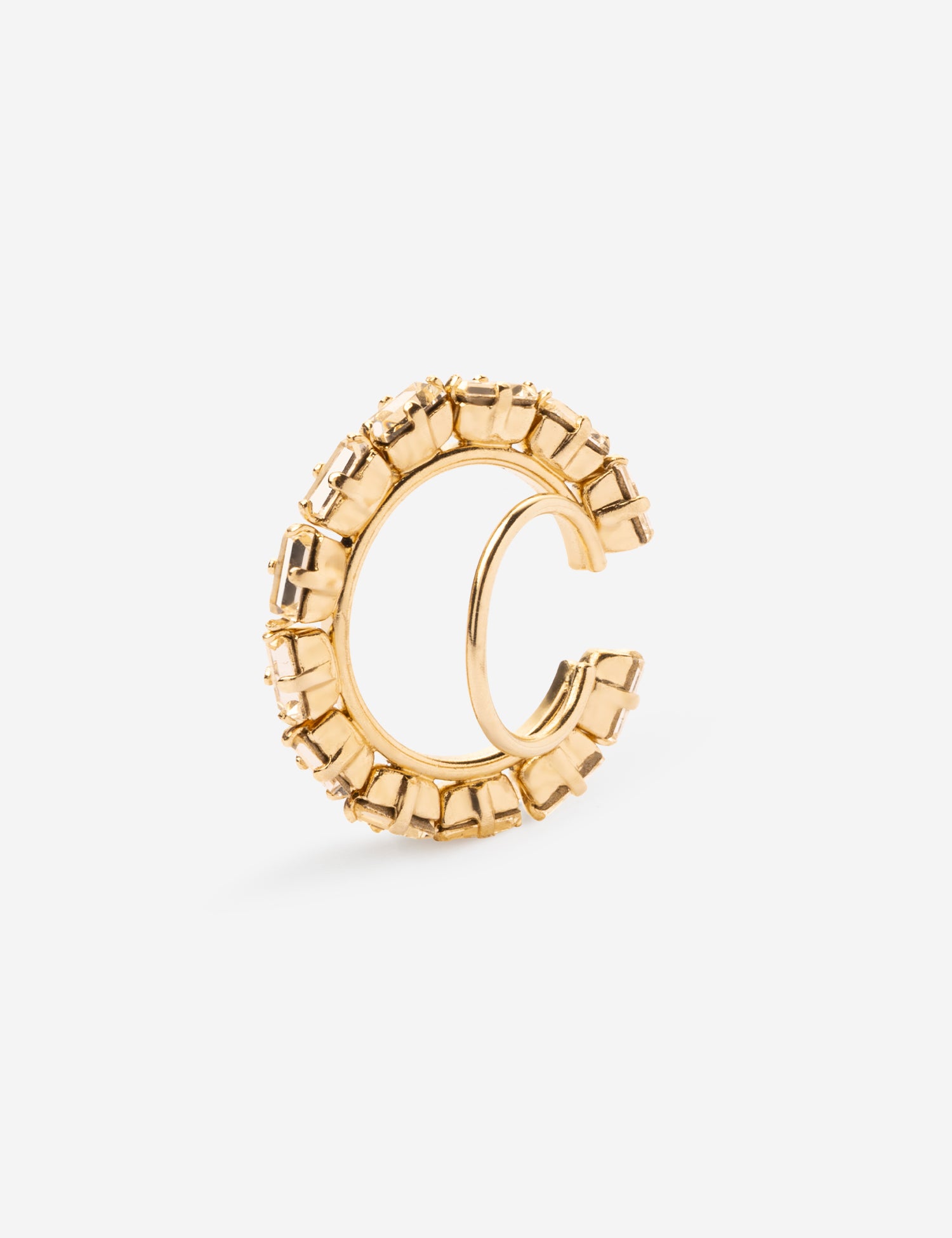 Bague d'oreille anneau plaqué or et cristaux bleus