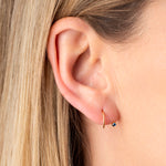boucle d’oreille dorée avec pierre bleue