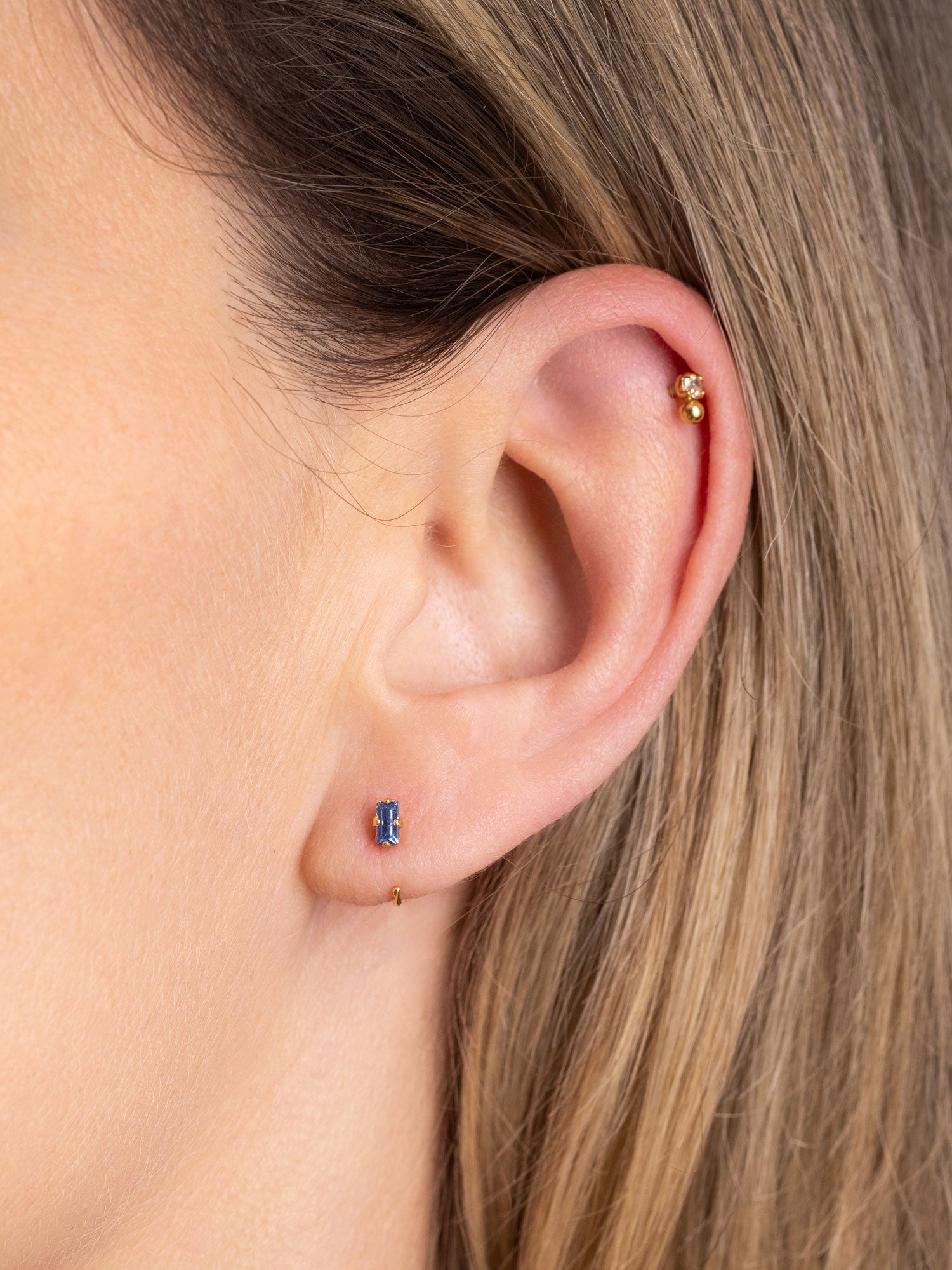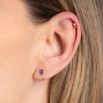 Parées de cristaux saphir, les mini créoles Marcel s'enfilent aisément et sont d'une praticité à toute épreuve. Une élégance discrète qui s'impose comme un choix idéal pour un style délicat et raffiné.