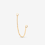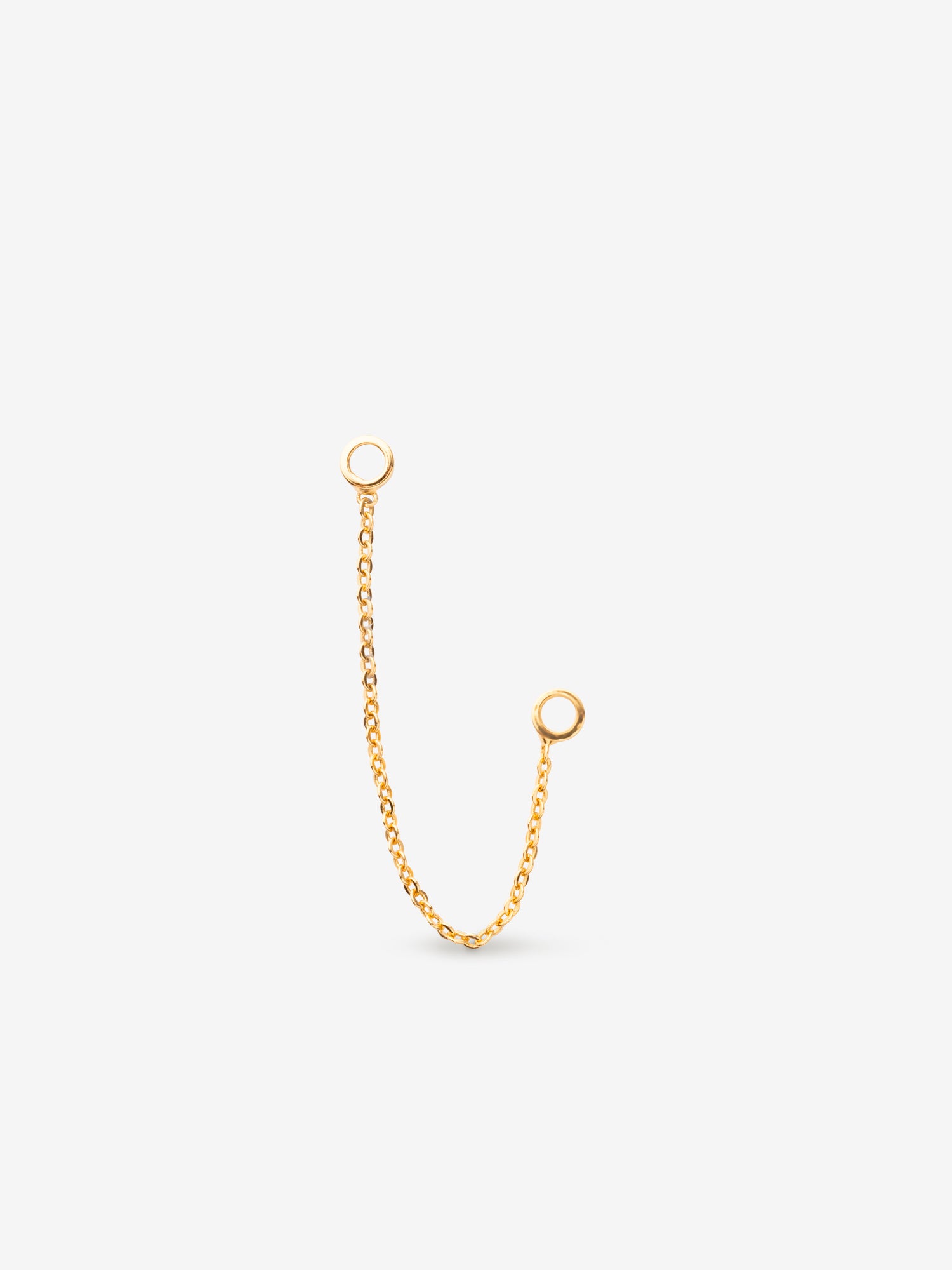 April Please vous offre la liberté de réinventer votre look en fonction de vos envies. La chaînette back ear n°1 a le pouvoir d'upgrader votre boucle ou votre piercing en un tour de main. Facile à installer, cette chaine complémentaire se fixe entre différens points de votre oreille grâce à ses petits anneaux à l'avant et à l'arrière d'une boucle puce mais aussi entre deux boucles ou deux piercings. Son design épuré laisse place à une infinité de combinaisons, À vous de la dompter et de la moduler pour créer des looks qui vous ressemblent