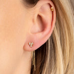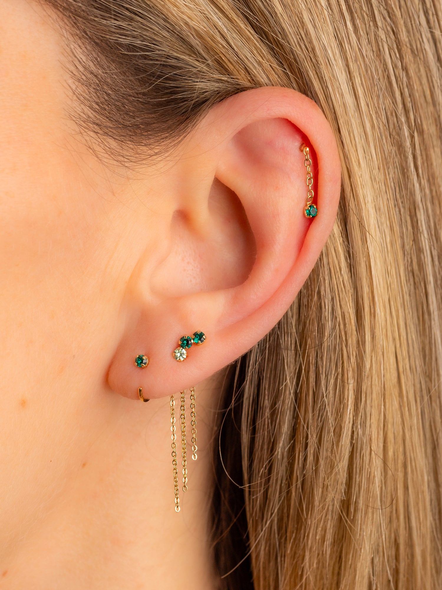 Idéal pour sublimer vos boucles, cet accessoire se glisse facilement sur la tige de votre bijou. Trois chaînes fines s’ajoutent et transforment votre boucle en un pendentif délicat et sensuel. À porter sur une puce ou un piercing pour un effet élégant et original.