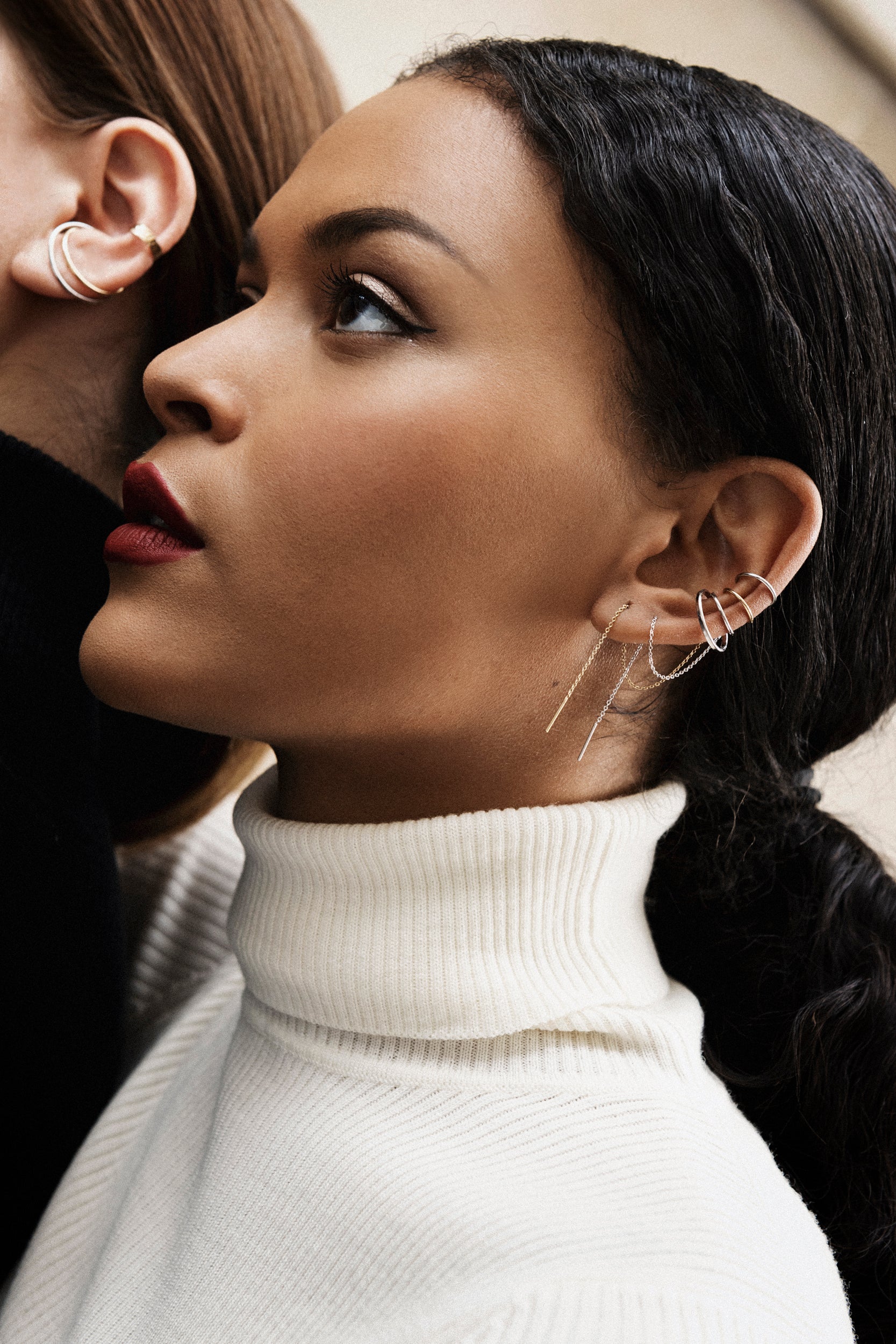 La boucle Ferdinand s’adapte à toutes vos envies. Vous pouvez passer sa chaîne par l’avant ou l’arrière de l’oreille, dans un, deux ou trois trous, pour changer de style à volonté. Polyvalente, elle vous permet de créer des looks différents en un instant, pour chaque moment de la journée.