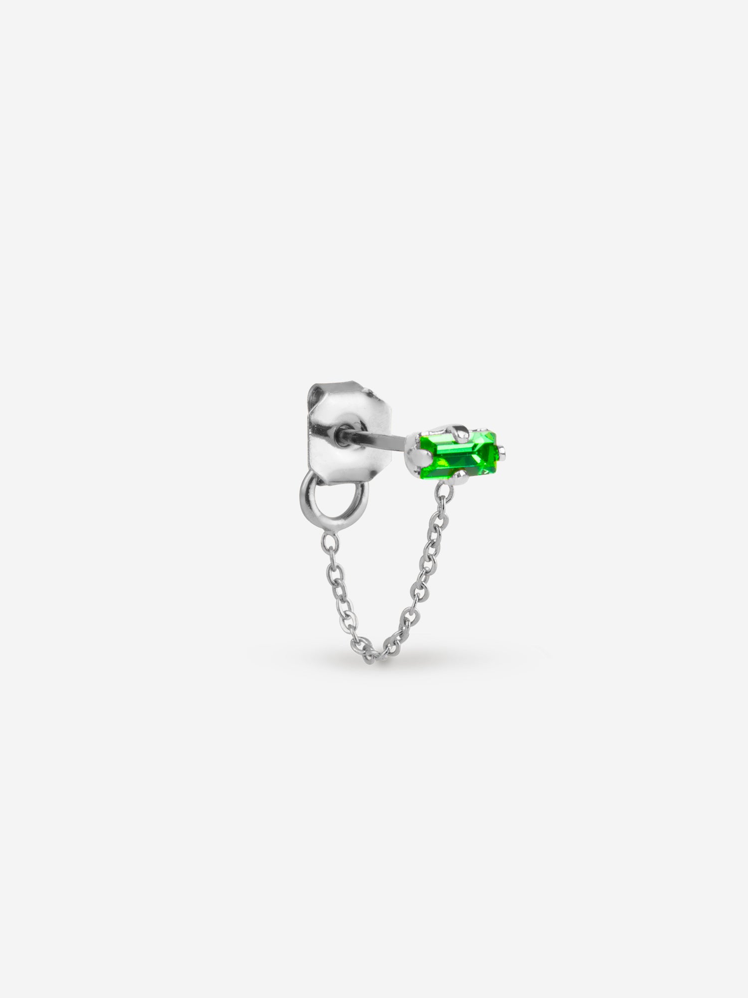 puces d'oreilles argent chaîne fine, cristal vert