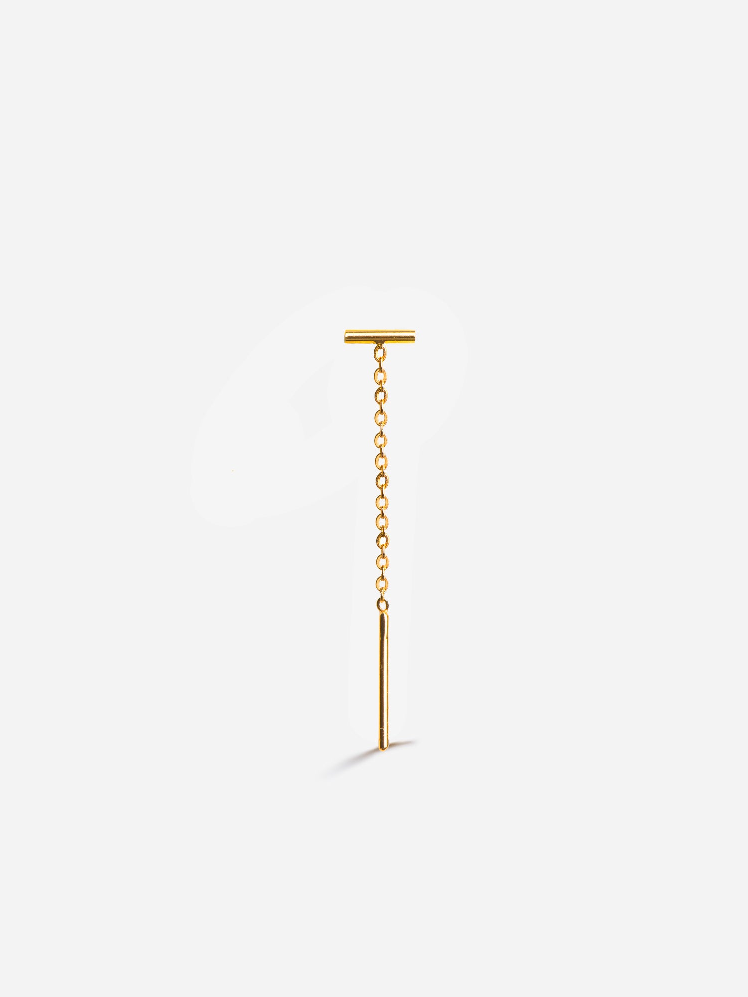 Par l’avant, le petit jonc apparaît pour un look rock affirmé ; par l’arrière, seule la chaîne délicatement pendante se dévoile pour un rendu plus minimaliste. Pssst, cette boucle se passe aussi dans deux trous pour un troisième effet.