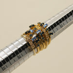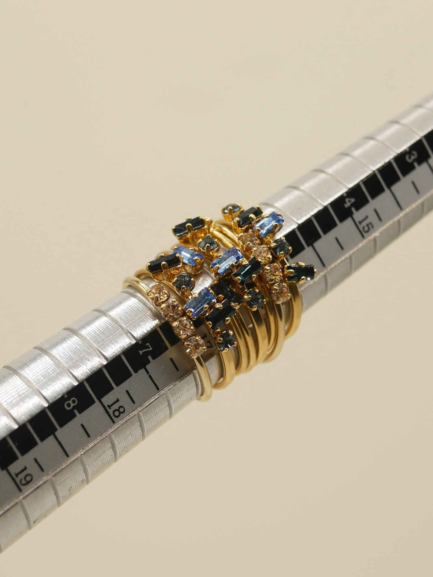 La bague Constant en plaqué or séduit par son design délicat et élégant. Ornée de plusieurs cristaux facettés dans des teintes de bleus variées, elle apporte une touche sophistiquée et lumineuse à toutes vos tenues. Chaque cristal, soigneusement serti à la main reflète la lumière, mettant en valeur le contraste subtil entre les nuances et la finition dorée de l'anneau. Parfaite pour une occasion spéciale ou pour ajouter une note raffinée à votre quotidien, cette bague incarne l’alliance de l’élégance intemporelle et de la modernité.