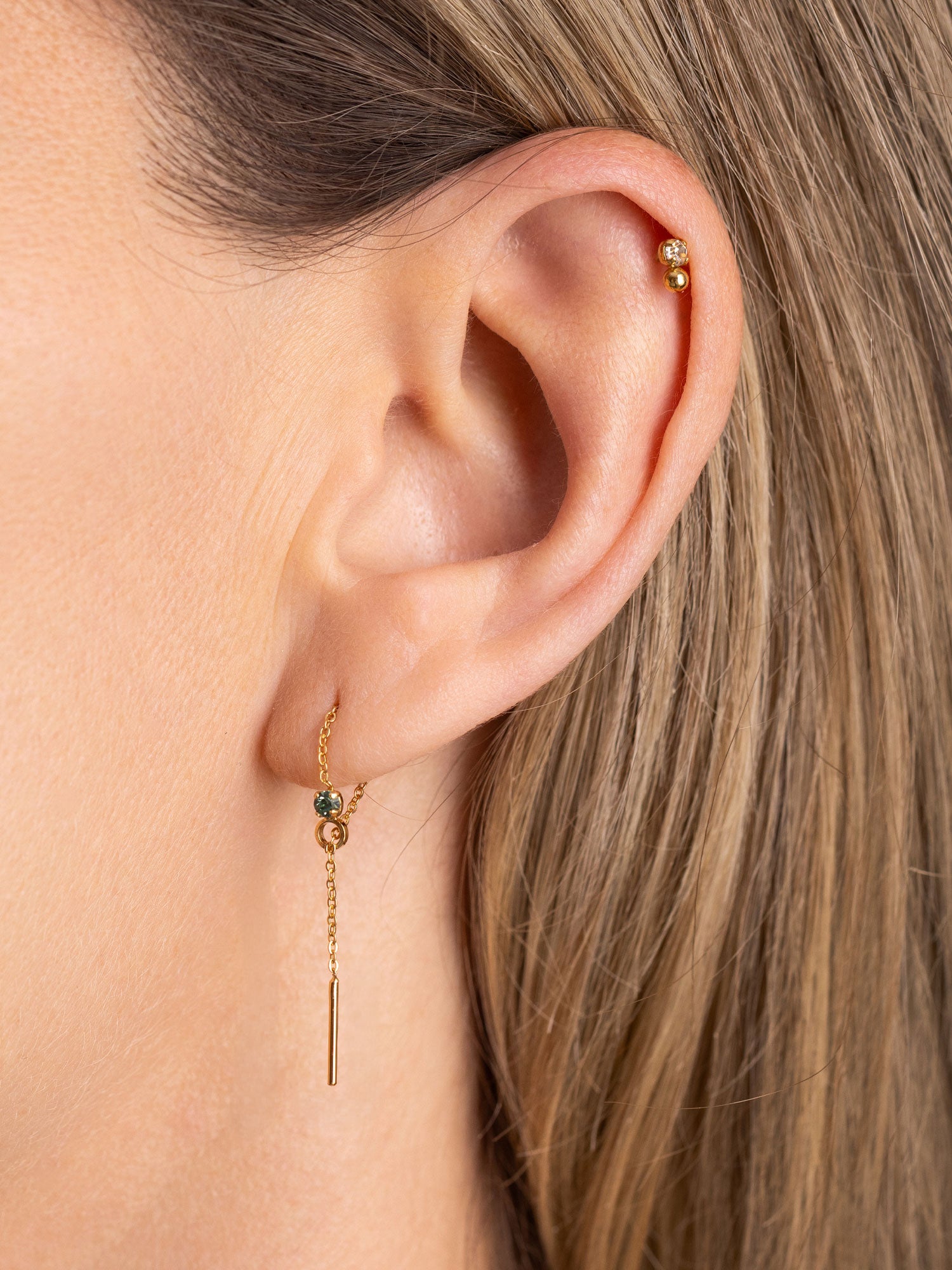 Les bijoux April Please sont en laiton plaqué or 18 carats, 3 microns ou palladium. Les pierres qui ornent certains modèles sont des cristaux de verre.