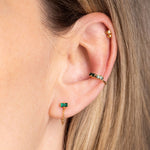 La mini paire de boucles d'oreilles Blaise se compose de boucles avec une chaînette et sertie de cristaux vert émeraude, couleur phare de la marque. À shopper en paire ou à l'unité pour créer le combo de vos envies !