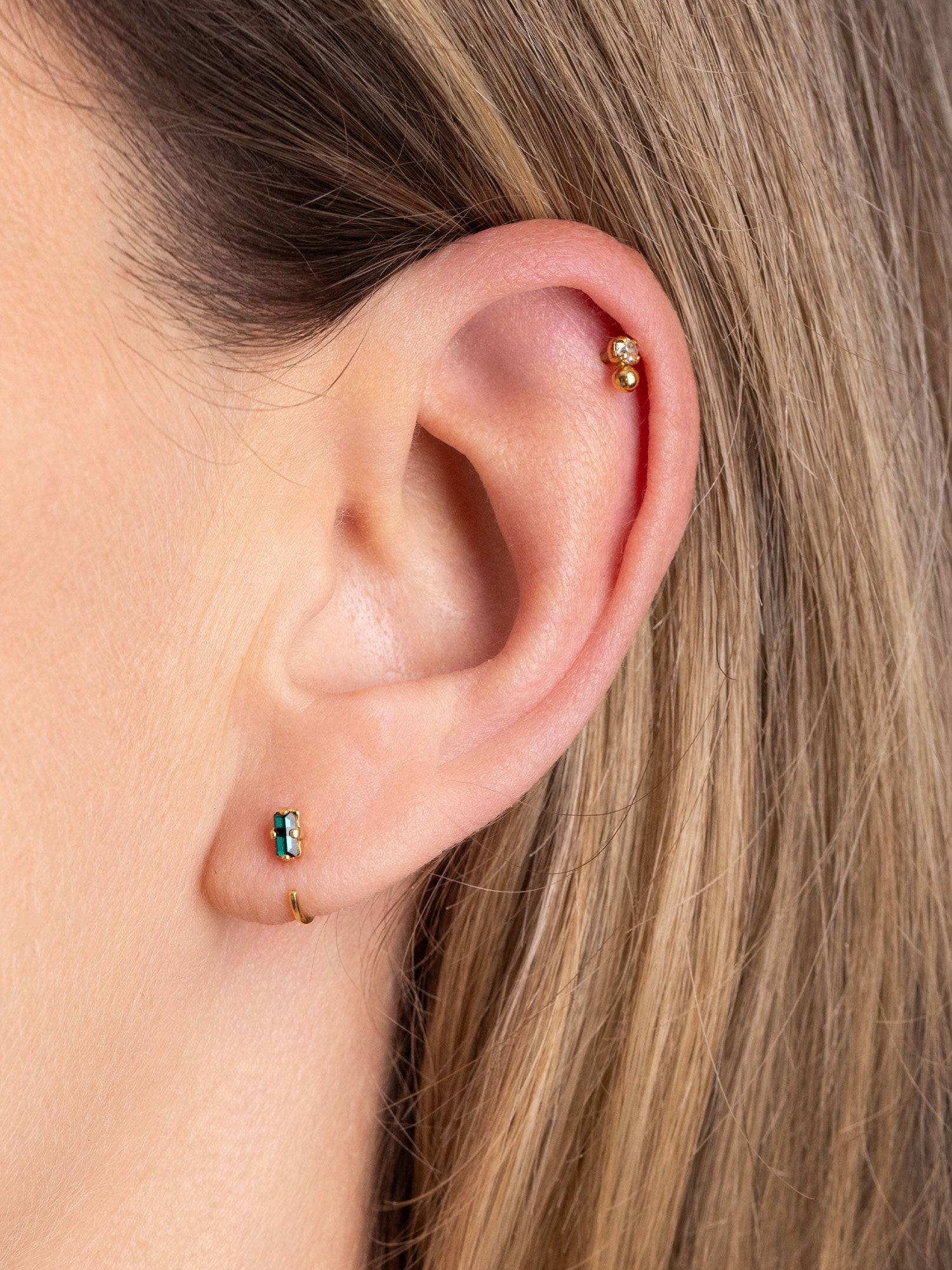 Les bijoux April Please sont en laiton plaqué or 18 carats, 3 microns ou palladium. Les pierres qui ornent certains modèles sont des cristaux de verre.